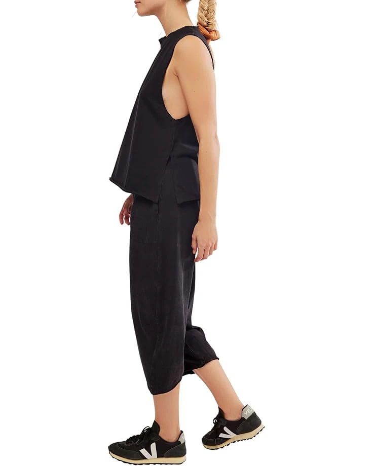 - Whether you’re lounging at home or packing for a vacation trip, the FP Movement™ Hot Shot Relaxed Set is a perfect choice. The set includes a racer-back top with a sleeveless style, wide armholes, side-slit detail, and a crew neckline. This pants set comes with high-rise harem-style pants with a wide elastic waistband and drop crotch. The soft cotton fabrication of the set offers all-day comfort. Lightweight and comfortable, this slouchy set makes a great addition to your wardrobe.