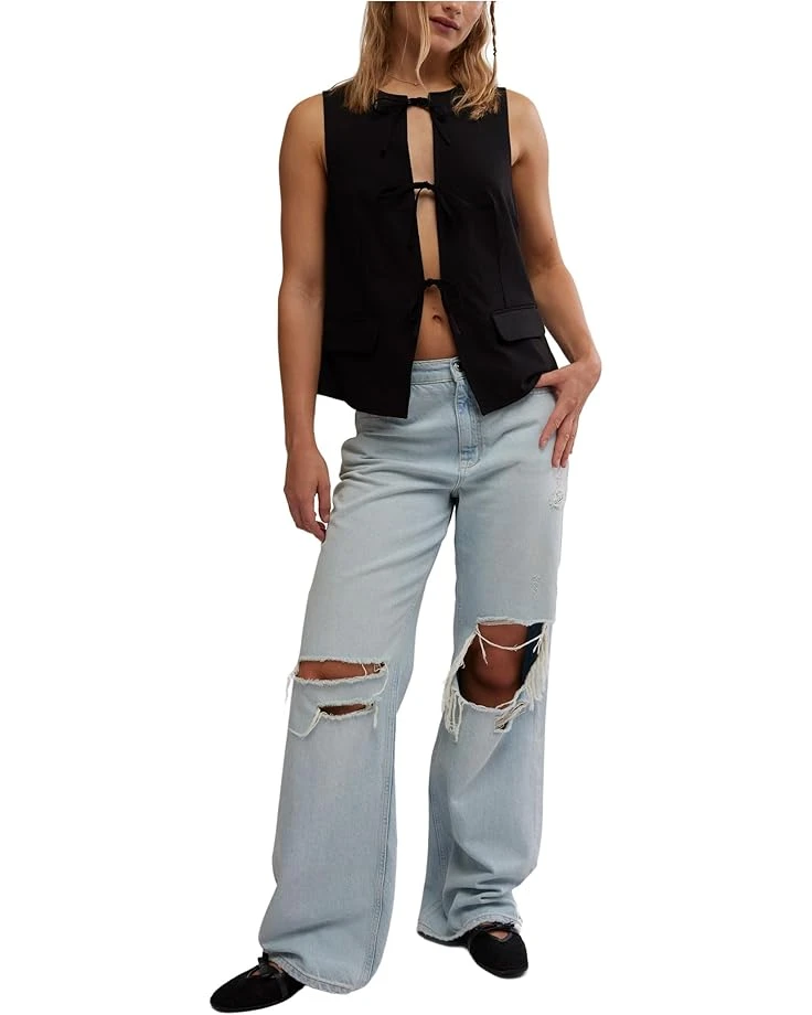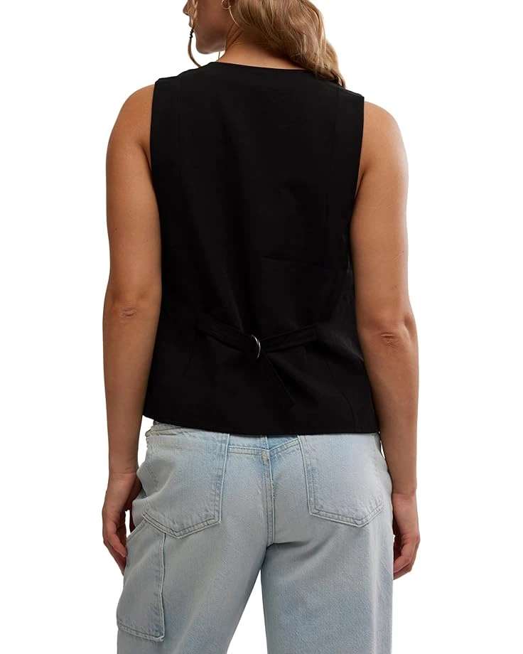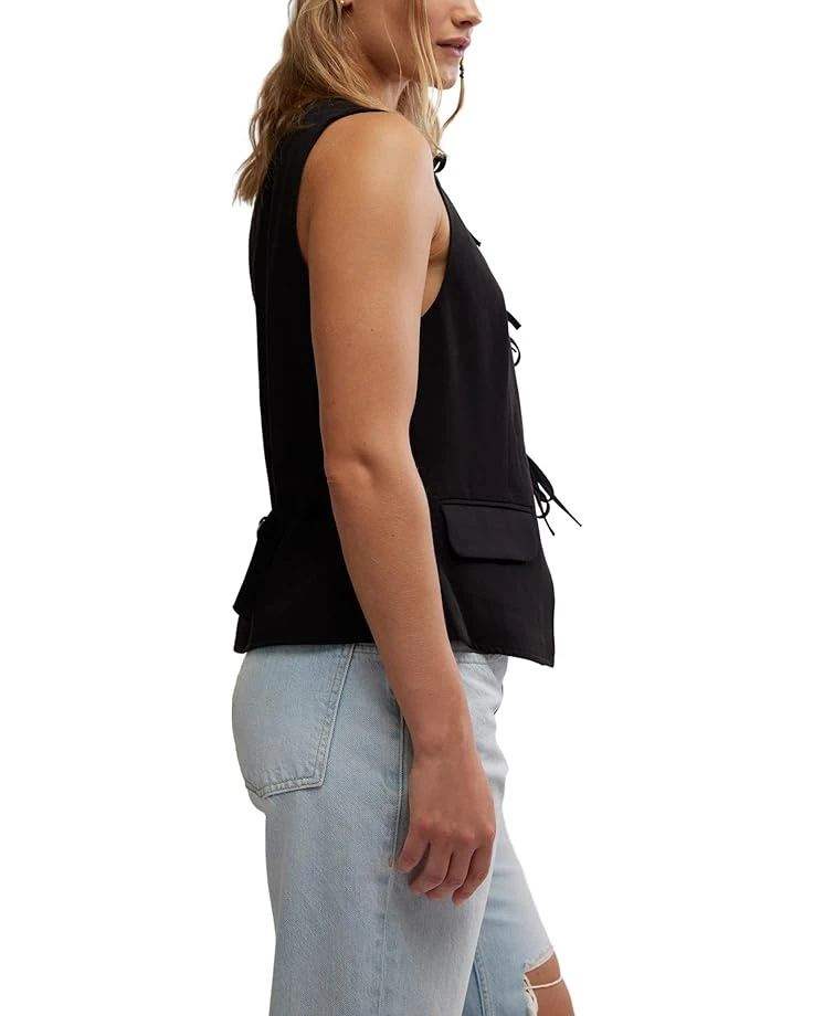 - Style redefined: The Celia Suit Vest by Free People™ is your new wardrobe staple. This effortlessly sophisticated vest showcases a slim, relaxed fit that flatters your silhouette, while the tie-front detailing and adjustable buckle at the back provide a customized look. Crafted from soft fabrication, it features a stylish scoop neckline and a sleeveless design that’s perfect for layering or wearing alone. Lined for added comfort, this hip-length vest seamlessly transitions from day to night, making it a versatile addition to any wardrobe.