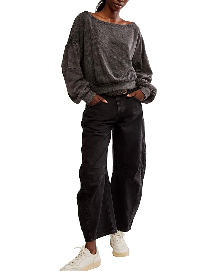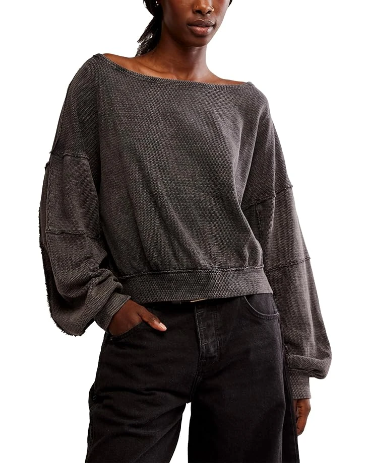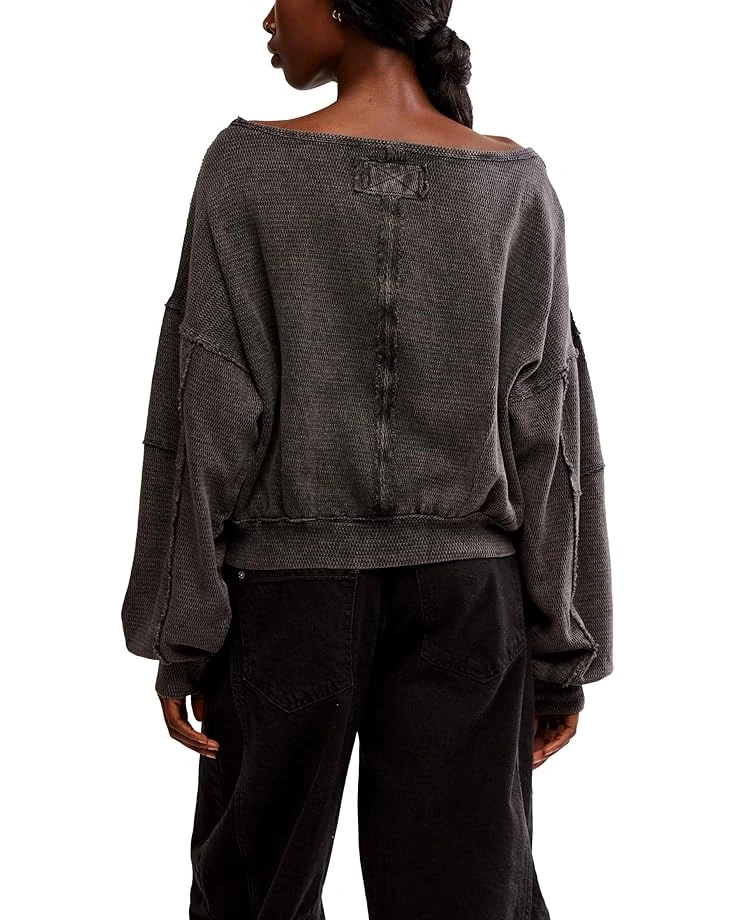 - Elevate your casual style in the comfy Free People™ Ife Pullover. Crafted from a cotton textured thermal fabrication, this pullover top features a wide scoop neckline, dropped dolman sleeves with elasticated cuffs, exposed seams throughout, and a banded hemline.
