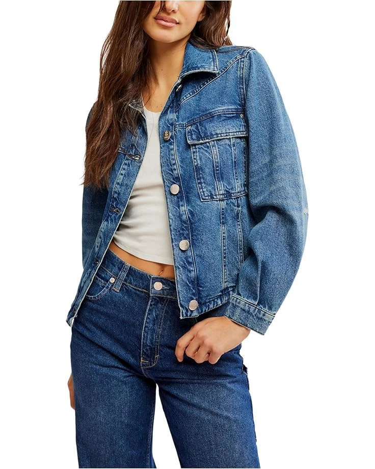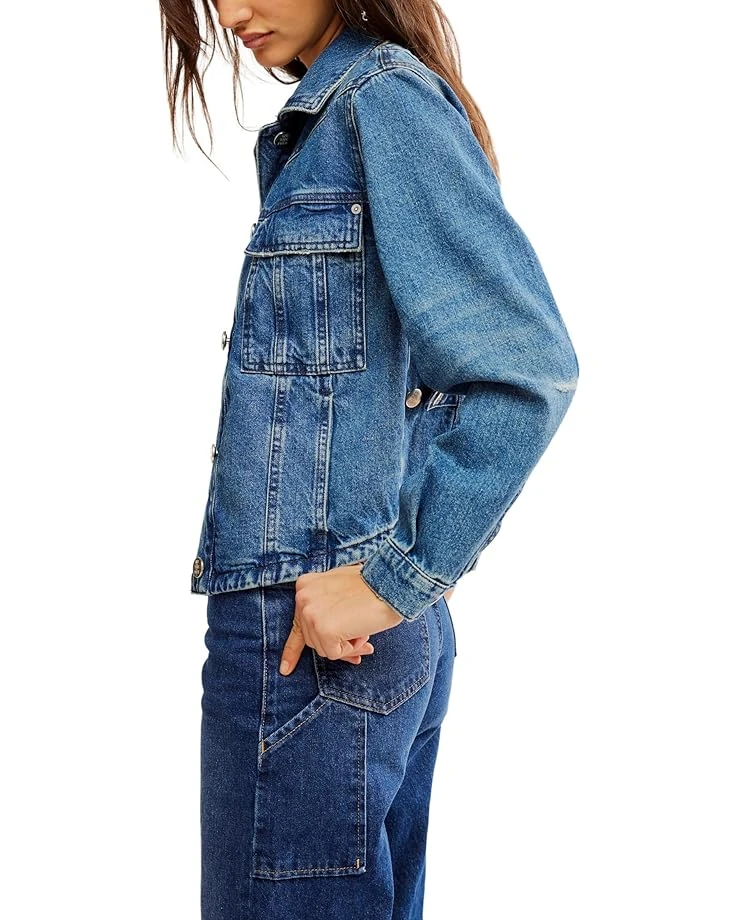 - Indulge in timeless cool wearing the Free People™ Jade Denim Jacket. Featuring a classic denim fabric and a chic collared neck, this jacket offers effortless style. Its button-down closure and long button-cuffed sleeves ensure a snug fit, perfect for any occasion. Complete with front flap chest pockets for added utility, it blends functionality with fashion. The low-high hem adds a modern twist, ideal for layering over any outfit.