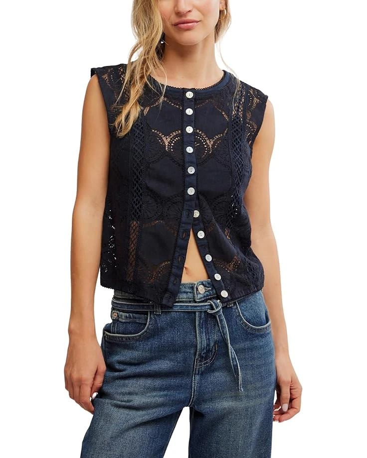 - The Free People™ Jae Knit Top is the perfect blend of chic and casual, featuring a crew neckline and sleeveless style for a breezy look. The standout cutwork lace detailing adds a touch of elegance, while the button-up closures and picot trimming give it a unique charm. Complete with a straight hem, this top is a must-have for any fashion-forward wardrobe. Why We ♥ It: Easy with your favorite jeans or layered with a cozy cardi, you’ll reach for this again and again.