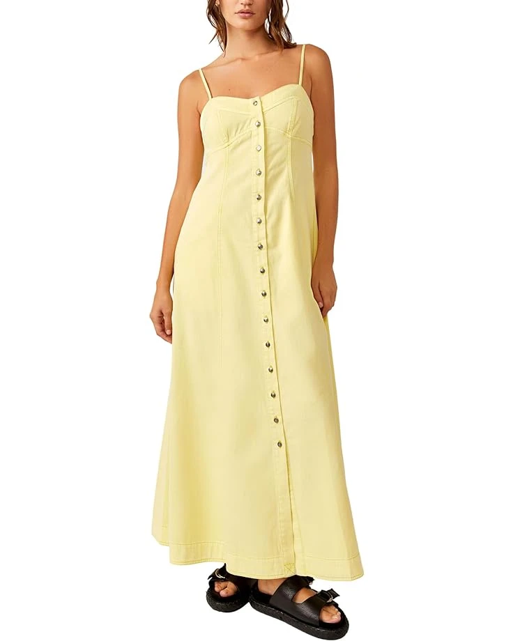 - Dive into ethereal elegance by wearing the Free People™ Just Jill Maxi. Crafted in a solid pattern with exquisite button embellishments adorning the front design, its square neckline and sleeveless silhouette offer a flattering fit-and-flare appeal. Simply pull-on and radiate sophistication.