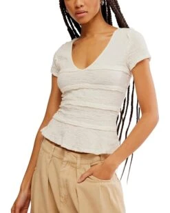 - Step outdoors with finesse and flair wearing the Free People™ Krystal Tee. It features a wide V-neckline, short sleeves, and layered detail with textured breathable fabrication.