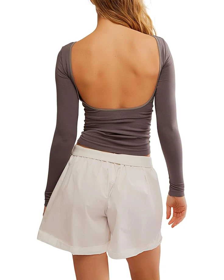 - Sleek sensation, effortless elegance of the Free People™ Low Back Seamless Long Sleeve. This fitted, crew neck top features long sleeves and a seductive back scoop neck, offering a chic silhouette perfect for layering or wearing alone. Crafted from the softest intimates by Intimately, this piece promises unrivaled comfort and style.
