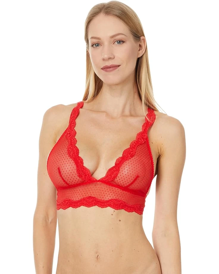- The Free People™ Midweek Longline Bra feels soft against your skin and has a sheer mesh fabrication for added style. It features a halter-style, pull-on design, dotted detail, lace trim, low-cut neckline, darting at the bust, unlined cups, and racerback detail. This soft bra is an in-house label and is a best-ever base layer.