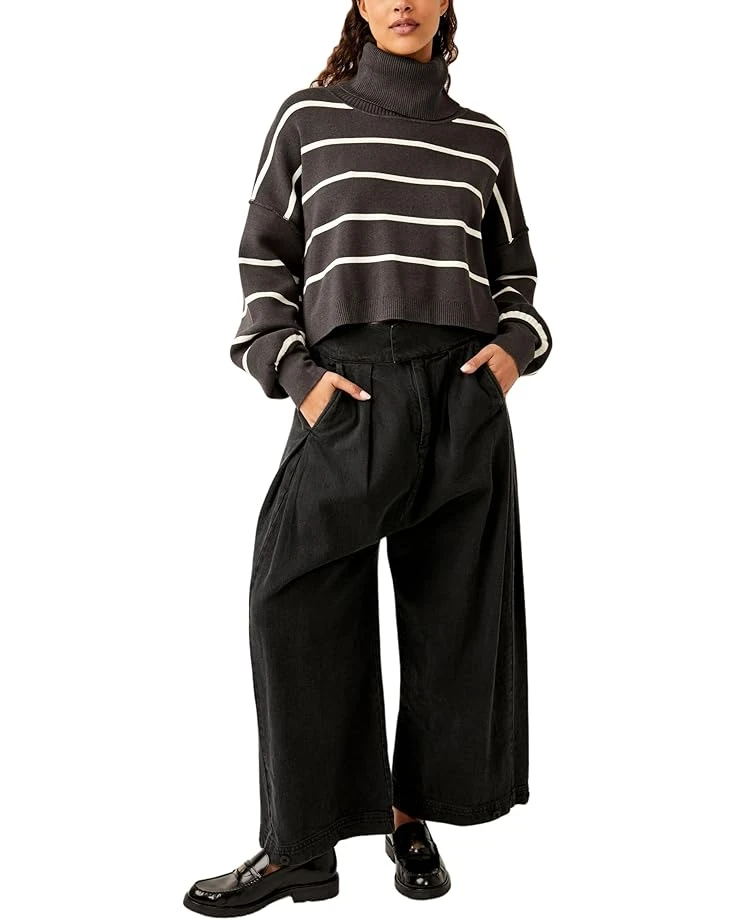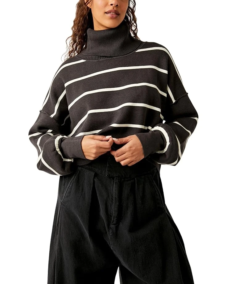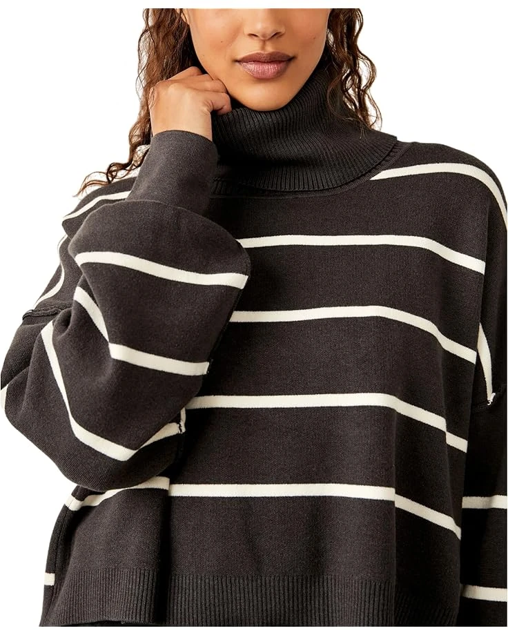 - Accentuate your style even on the coldest days wearing the soft and comfy Free People™ Paulie Sweater which comes with a ribbed turtleneck and a slightly cropped silhoutte. The sweater offers a cozy relaxed fit and features dropped shoulders, long sleeves, defined seaming, and a straight ribbed hem. The striped detailing adds a fine touch of style.