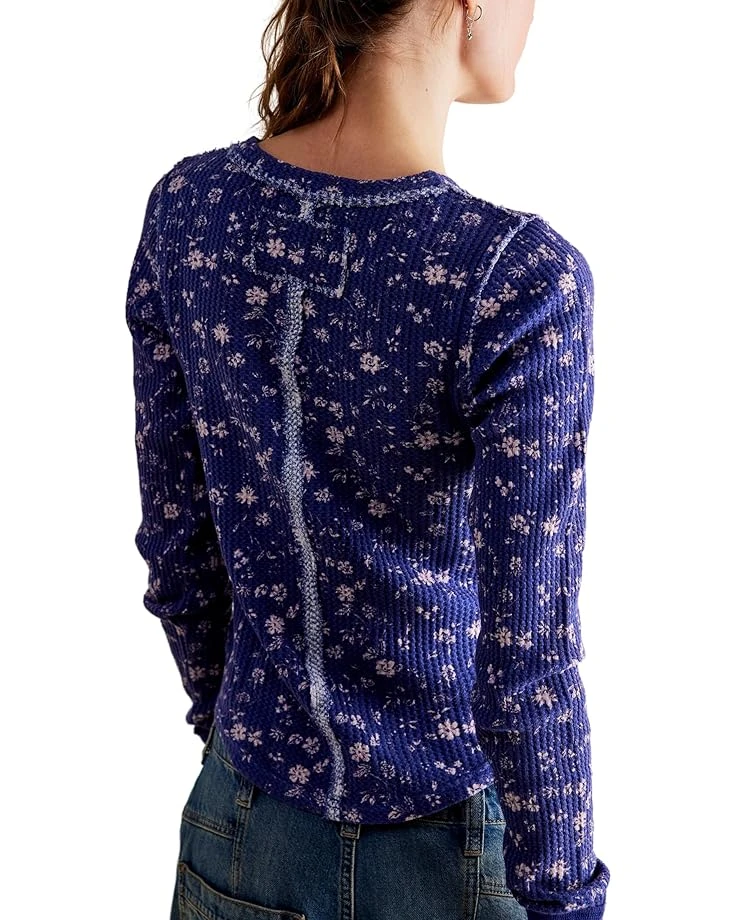 - Find your favorite base-layer for those chilly weather days in the Free People™ Pretty Little Thermal. Crafted from a soft cotton fabrication, this top features a crew neckline, long sleeves with exaggerated cuffs and thumbhole detail, graphic print throughout, raw seams, and a curved hemline.