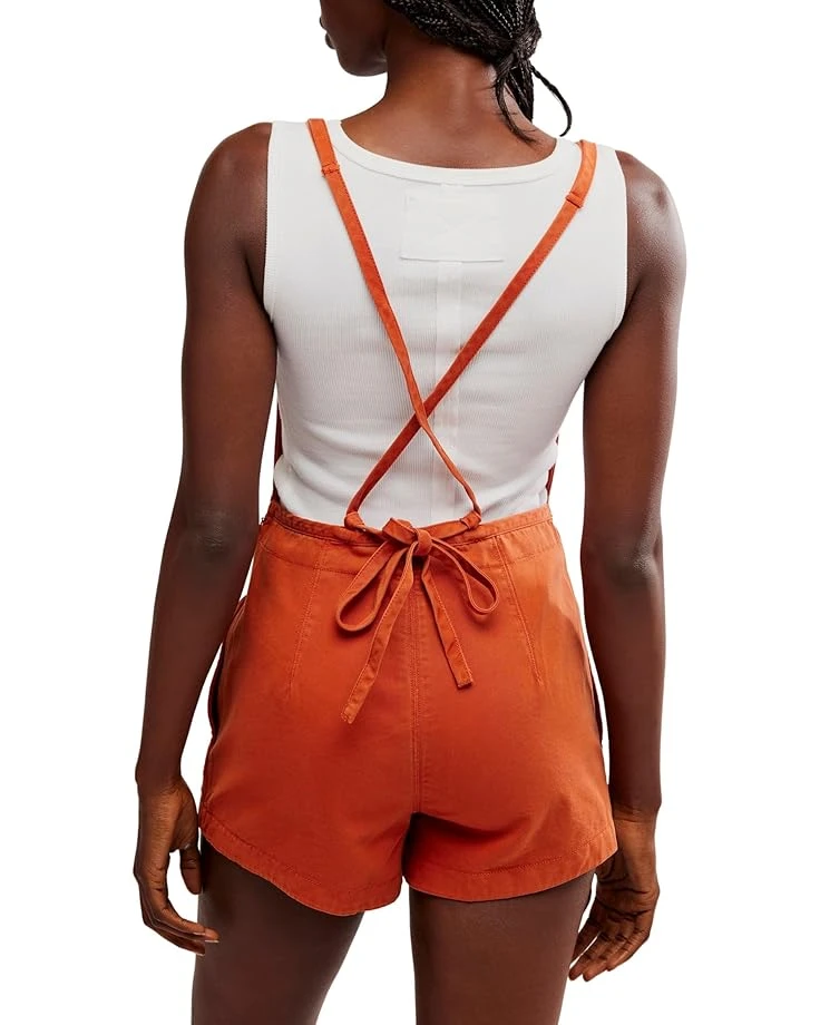 - Revamp your sunny day’s style adorning Free People™ Tough Love Shortall! Dive into the trend with bib shorts and a classic fit, complete with two side pockets for your essentials. The crisscross tie back adds a touch of flair while the square neck elevates your look. Functional yet fashionable, this shortall features two front chest pockets and a convenient pull-on design for effortless wear.